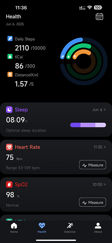 From steps taken to calories burned, Eclipse captures your movement automatically with heart rate, distance, and energy tracking all day long.