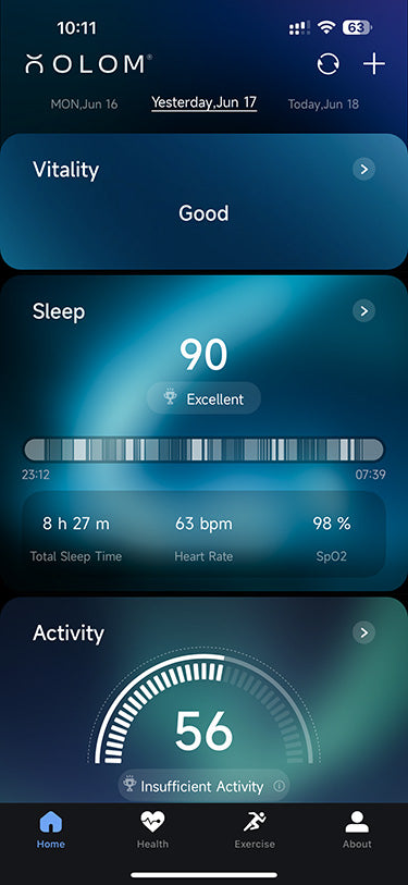 OLOM Eclipse is a premium smart ring that tracks Sleep, Stress, Recovery, Activity, Exercise and Women’s Health with lab-grade precision.