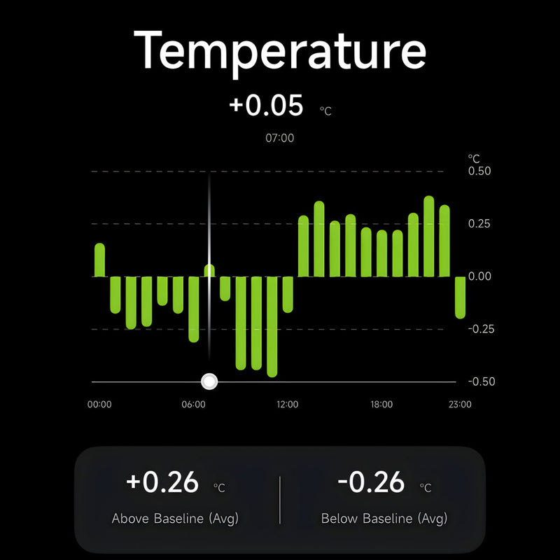 Eclipse monitors your skin temperature in real time to detect early signs of illness, recovery strain, or hormonal shifts so you’re aware before your body tells you.